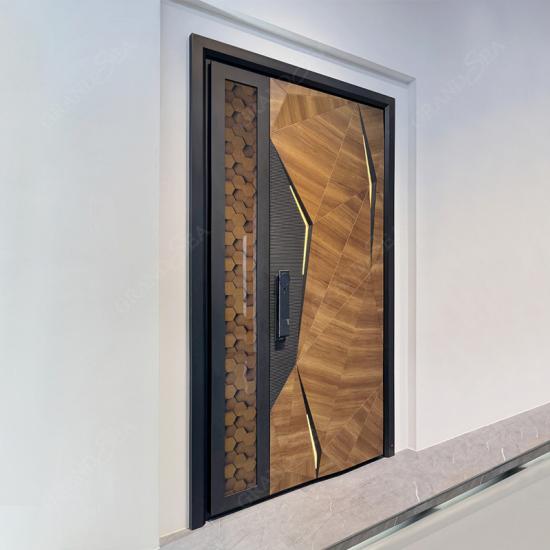 Modern Honeycomb Decor Wood Grain Smart Lock Pivot Front Entry Doors