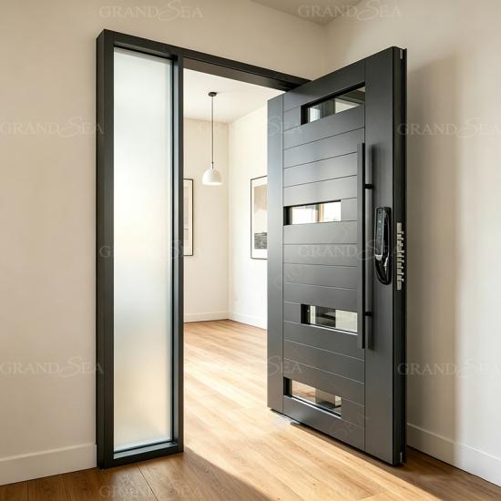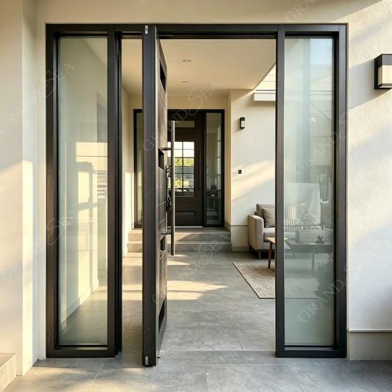 Premium Stylish Weatherproof Aluminum Pivot Exterior Door with Frosted Glass Side Windows