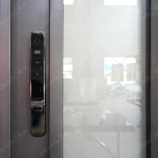 | Hardware | Heavy-duty pivot hinge, modern pull handle, prepped for smart locks |